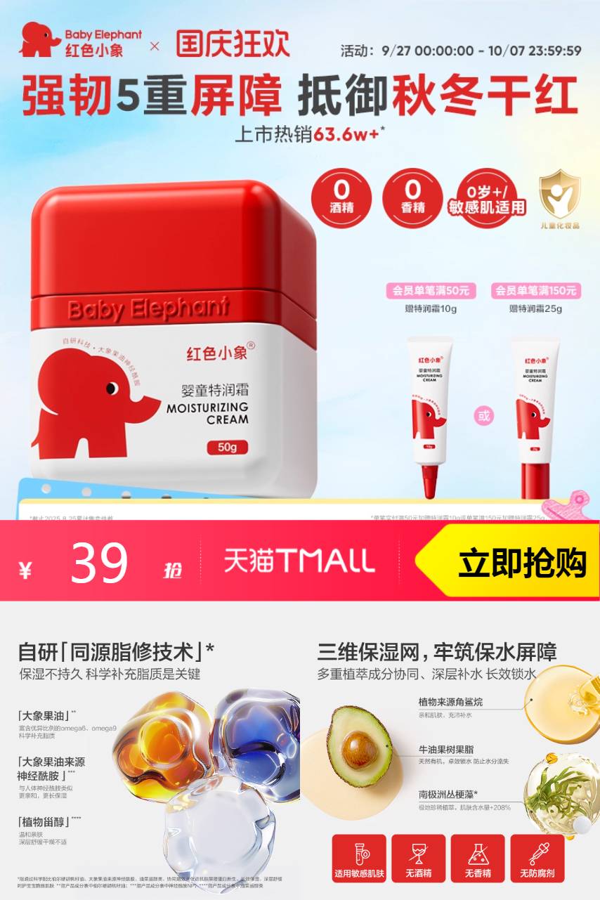 红色小象夏季冰雪面霜50g,宝宝夏季蕞佳搭档!小脸再也不会红红的!宝宝皮肤舒缓、去红!保湿,晒后修复一手抓!清爽不黏腻,给孩子安排上!给宝宝用一整个放心!不油腻的肤感!不愧是被宝妈圈里抢手的春夏霜!!