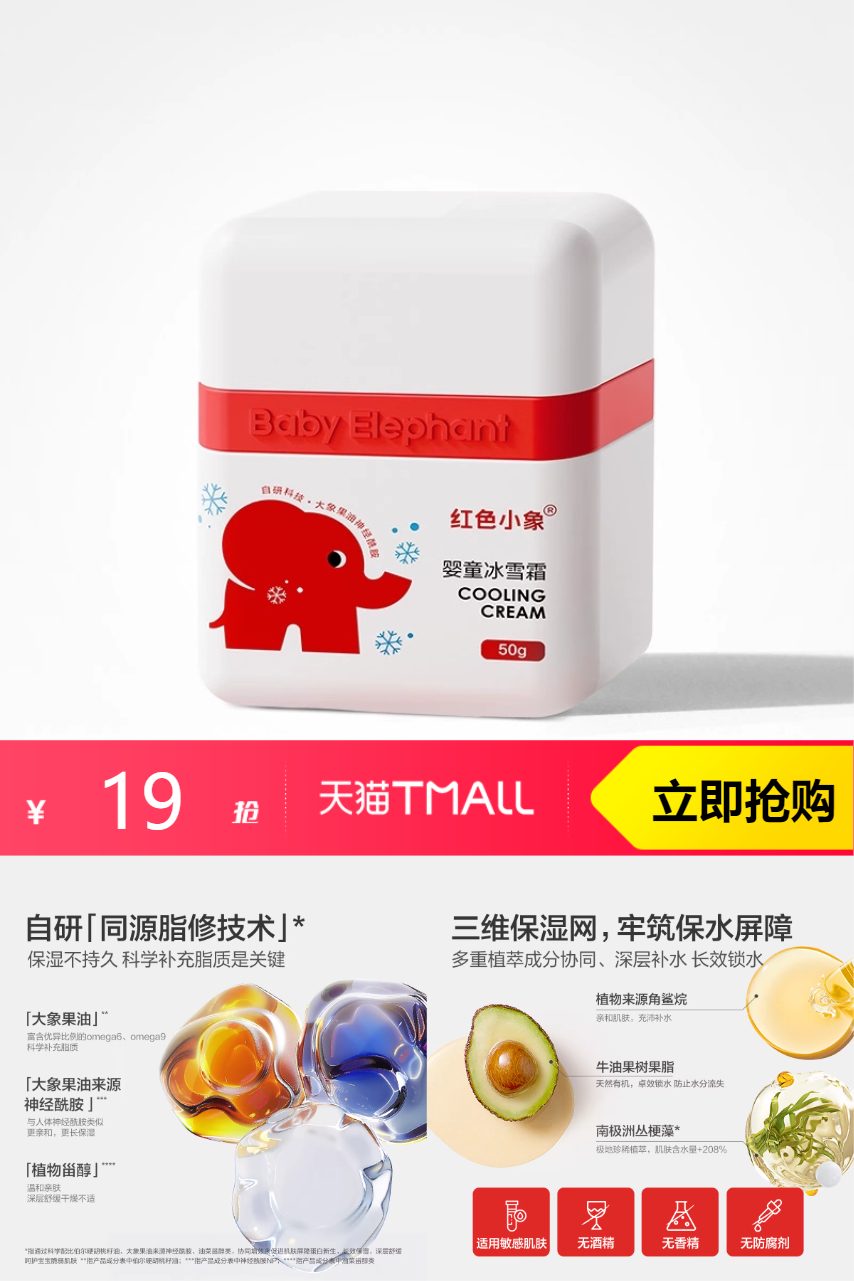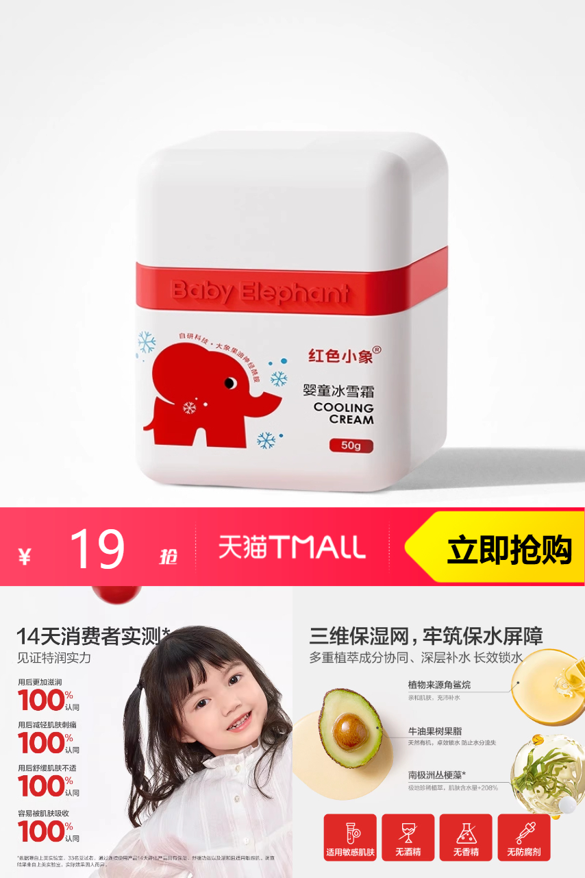 红色小象秋冬特润霜25g赠10g共35g,宝宝皮肤舒缓、去红!保湿,晒后修复一手抓!清爽不黏腻,给孩子安排上!给宝宝用一整个放心!不油腻的肤感!不愧是被宝妈圈里抢手的春夏霜!!