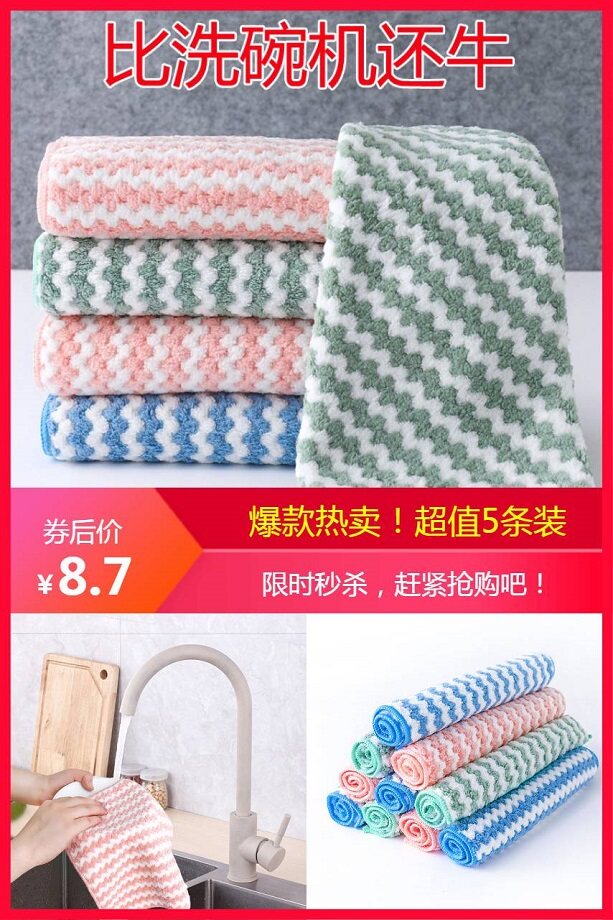 【爆款5条装,到手低至3元左右】家用清洁抹布,易清洗、强吸水、强去污,珊瑚绒材质,吸水更彻底,不易掉毛,不易褪色,油污一擦就净,洗碗不伤手!