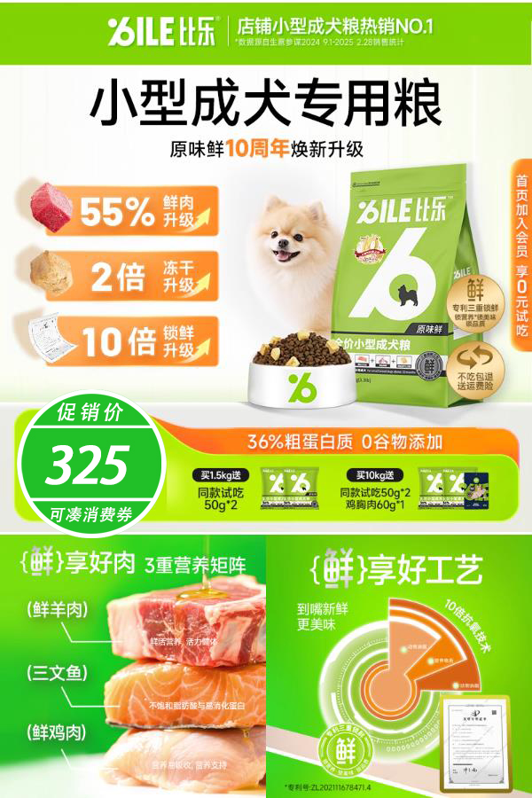 【88vip叠加消费券+淘金币+宠物惊喜券低于287元/20斤】比乐原味鲜小型成犬专用粮,鱼羊撞鲜+搭配鲜鸡+唤醒味蕾+强健体魄,2倍冻干量双倍快乐