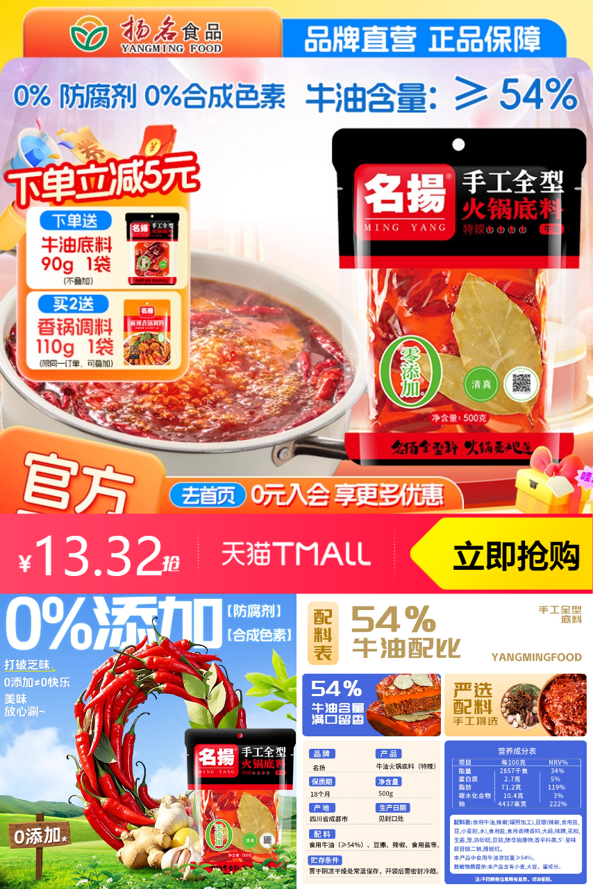 【叠淘金币足迹大额抵1.48元;到手13.32元;可叠加消费券,极至到手11.8左右。拍2赠195g红油钵钵鸡调料】全手工炒料,麻辣醇厚,香味十足,好吃不上火,买底料,就买名扬,川渝人都知道!