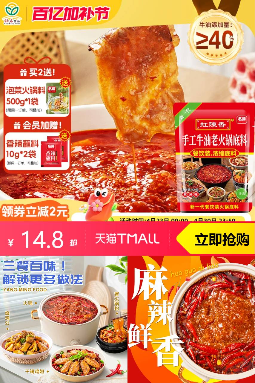 【淘金币大额可抵2.7元,到手12.1】全手工炒料,麻辣醇厚,香味十足,好吃不上火,买底料,就买名扬,川渝人都知道!