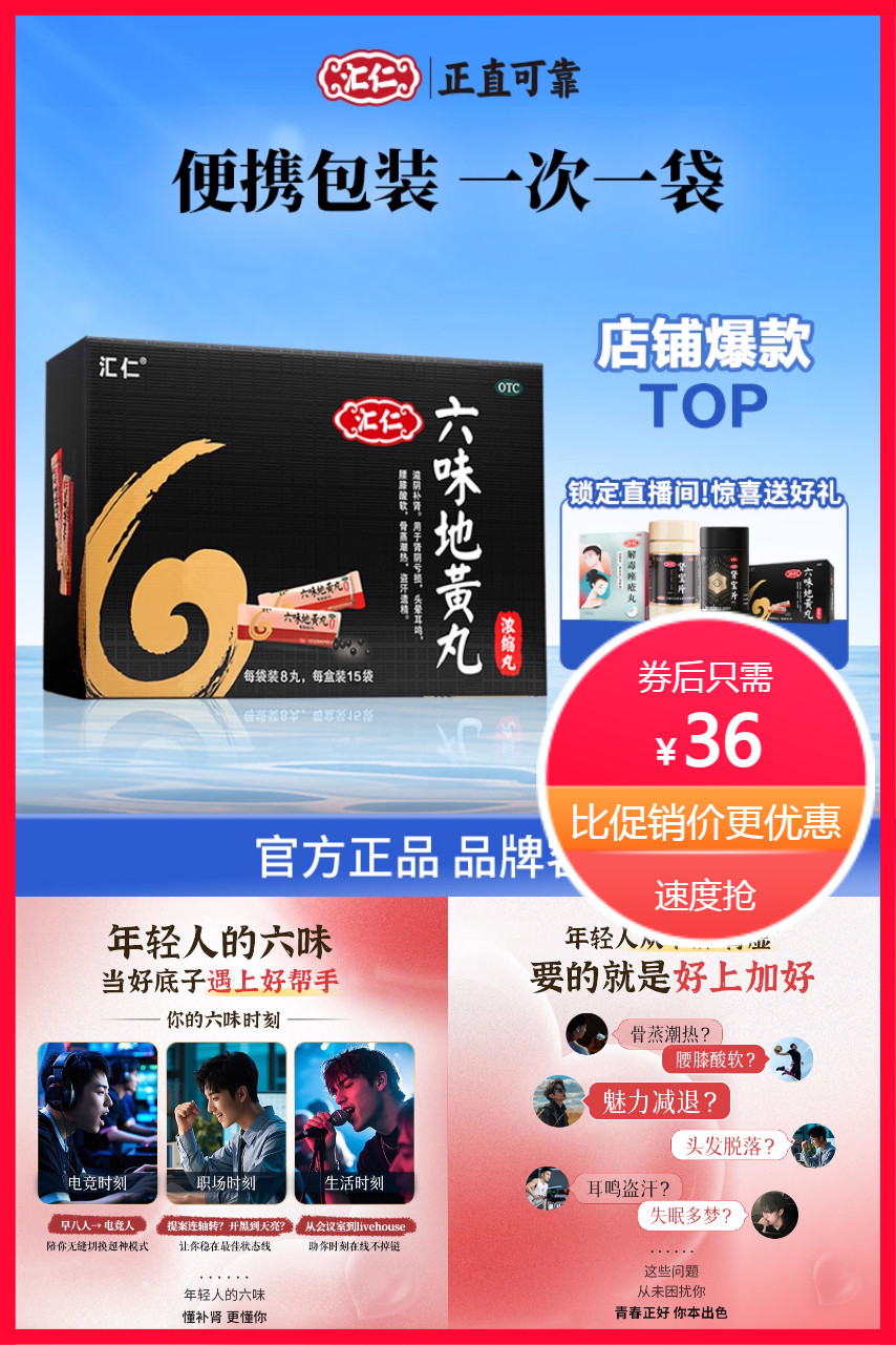 【可签到】汇仁六味地黄丸浓缩版,浓缩丸剂型,超微化技术! 快速见效,4倍提速, 滋阴补肾,强肾固体,头晕耳鸣,腰膝酸软,盗汗遗精,缓解疲劳,正品保障,正宗配方不含糖,值得信赖!高性价比之选,补肾优选药材,不再感觉身体被掏空~独立包装携带方便【赠运费险】