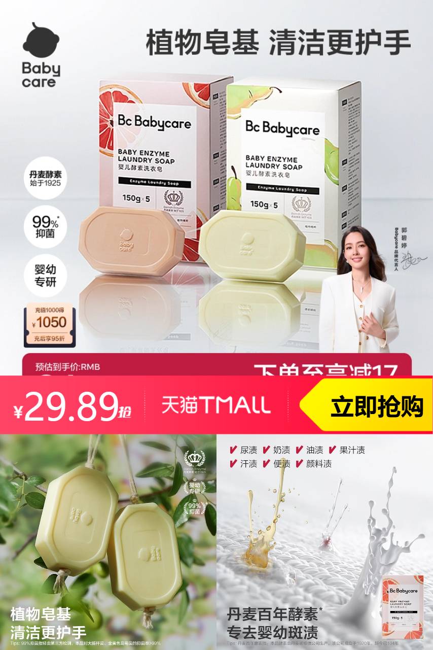 bc babycare babycare儿童酵素洗衣皂5块 1元减19.31 商品纠错