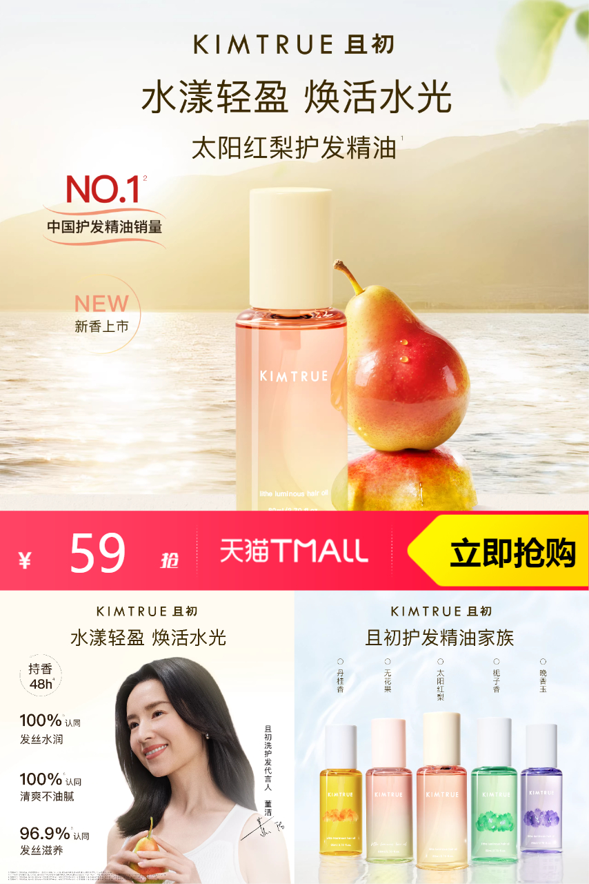 【机制:89.8-20(淘客券)-10.8(立减金额)-淘金币8.07-限时补贴3.73=到手价47.2元,加赠:买1赠护发精油1.5ml*2】KIMTRUE且初护发精油防干枯,内外兼修,水润亮泽,秀发元气满满!!