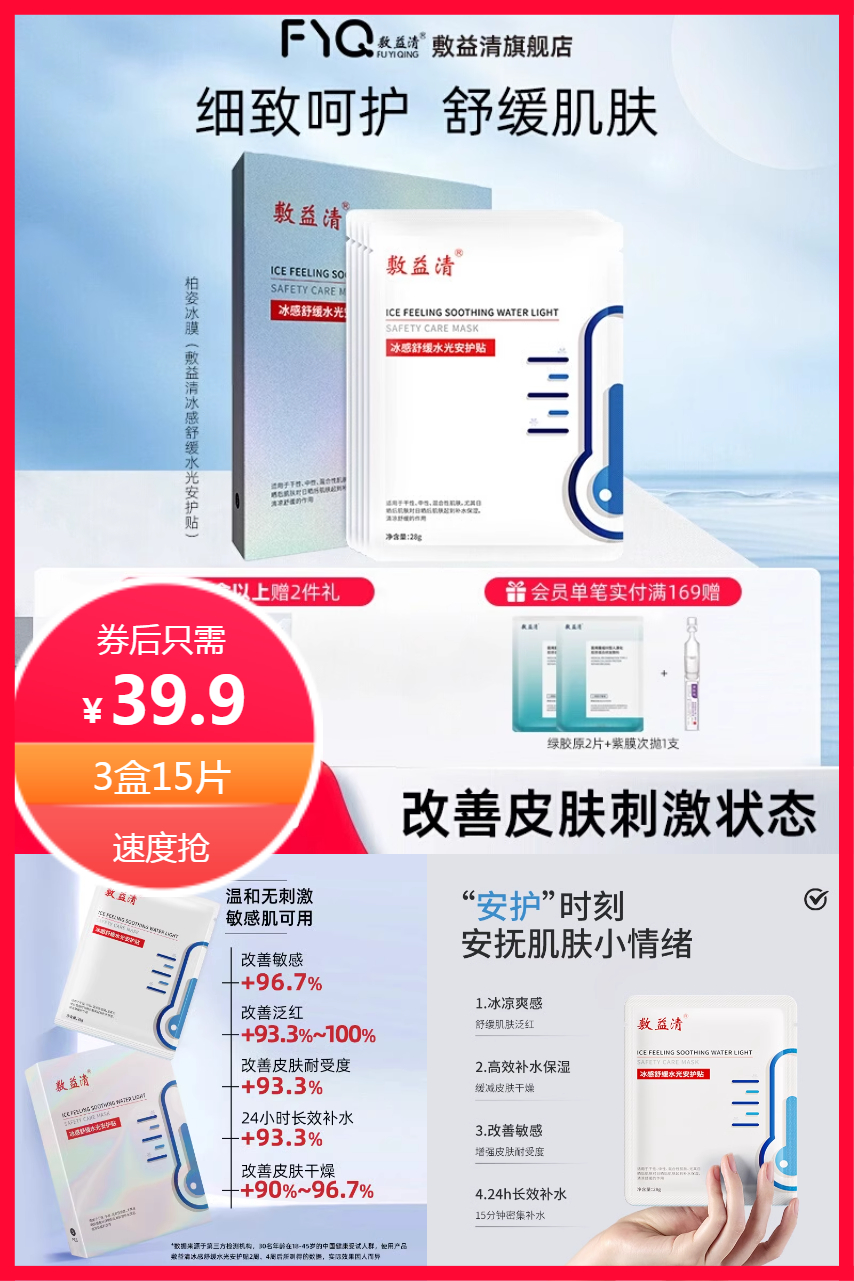 淘金币抵扣3元,到手36.9元,送2条冻膜3盒15片,深层补水保湿,冰感舒缓,专为晒后修复和熬夜肌设计。男女通用,快速缓解肌肤不适,恢复水润透亮!【赠运费险】