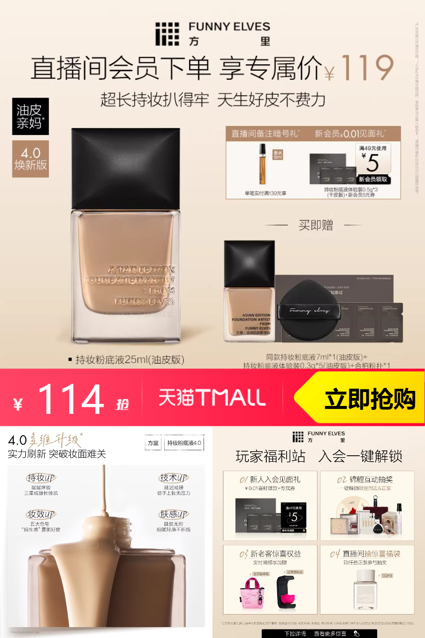 【活动价140-立减21-会员券5-淘金币抵扣2.8,买即赠同款持妆粉底液7ml(油皮版)+粉底液体验装0.3g*5+合拍粉扑*1】持久不脱妆,无论是晨间出门还是午后的阳光下,始终保持完美妆容。