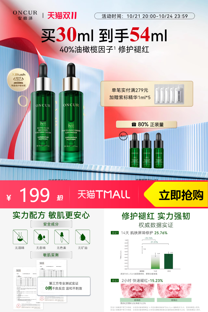 【叠加300-50到手约170.9 满30ml赠同款8ml*3】安修泽40%油橄榄因子精华液面部精华,双重质地 量肤定制,温润凝露质地肤感柔和更滋润~