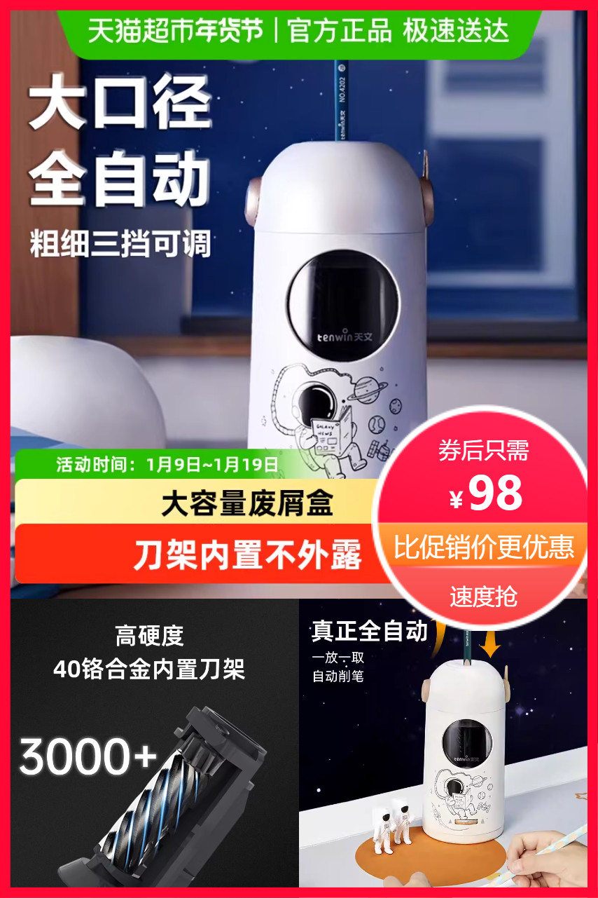 【淘金币+VIP+消费券到手更优惠,再送天文洞洞笔12支整盒】天文太空1号全自动削笔机,大口径,7-11.5mm粗细逼都可用,一放一取,智能自动进退,三挡可调,自动削笔!天生领航,带孩子子探索无限未来!