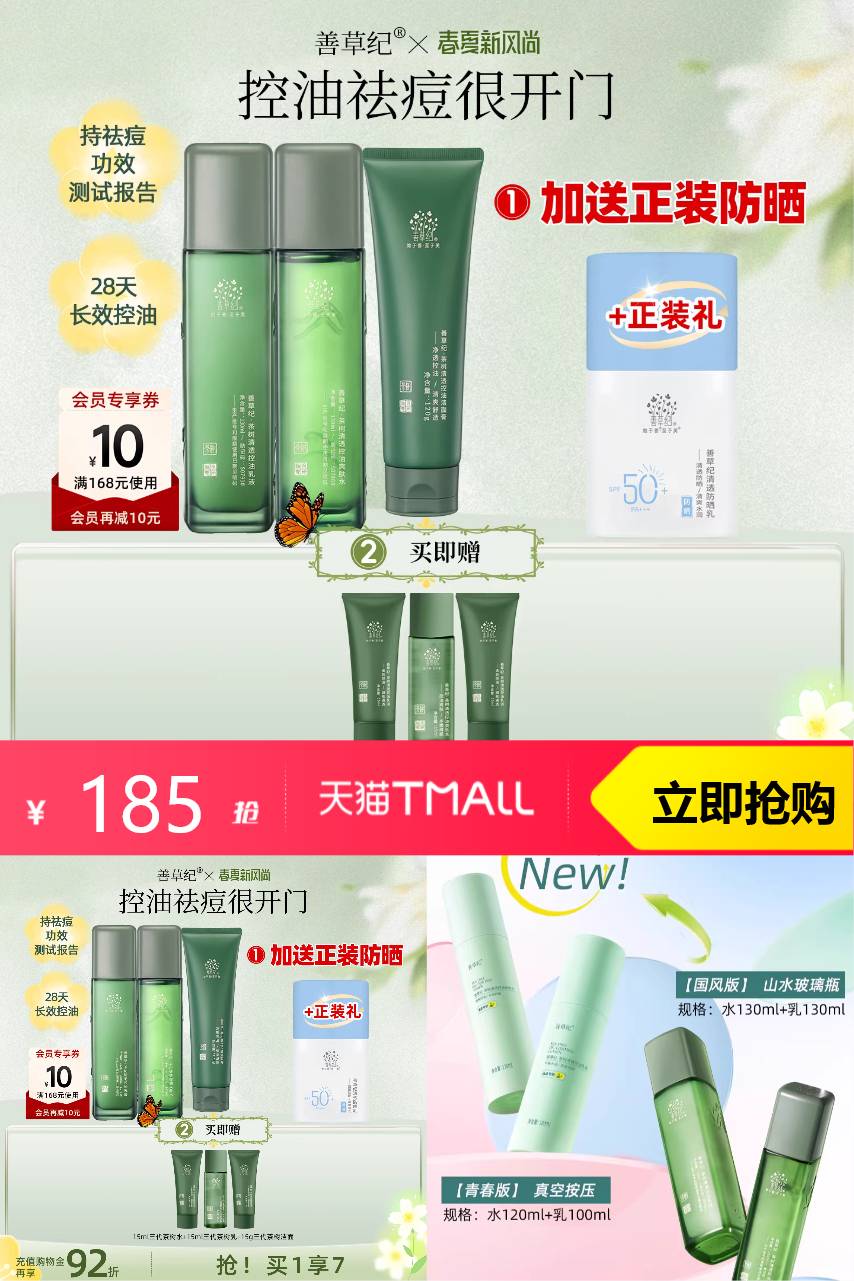 【凑淘金币+消费券+10元会员券到手148;【送正装】【买1送5】送正装30ml防晒霜+15ml三代茶树水+15ml三代茶树乳+8g茶树泥膜+1.5ml龙血精华】对于经常被痘痘困扰的小仙女们来说,这简直是一款救星产品!我使用了一段时间后,发现我的肌肤变得更加光滑细腻,痘痘问题也得到了很大的改善。
