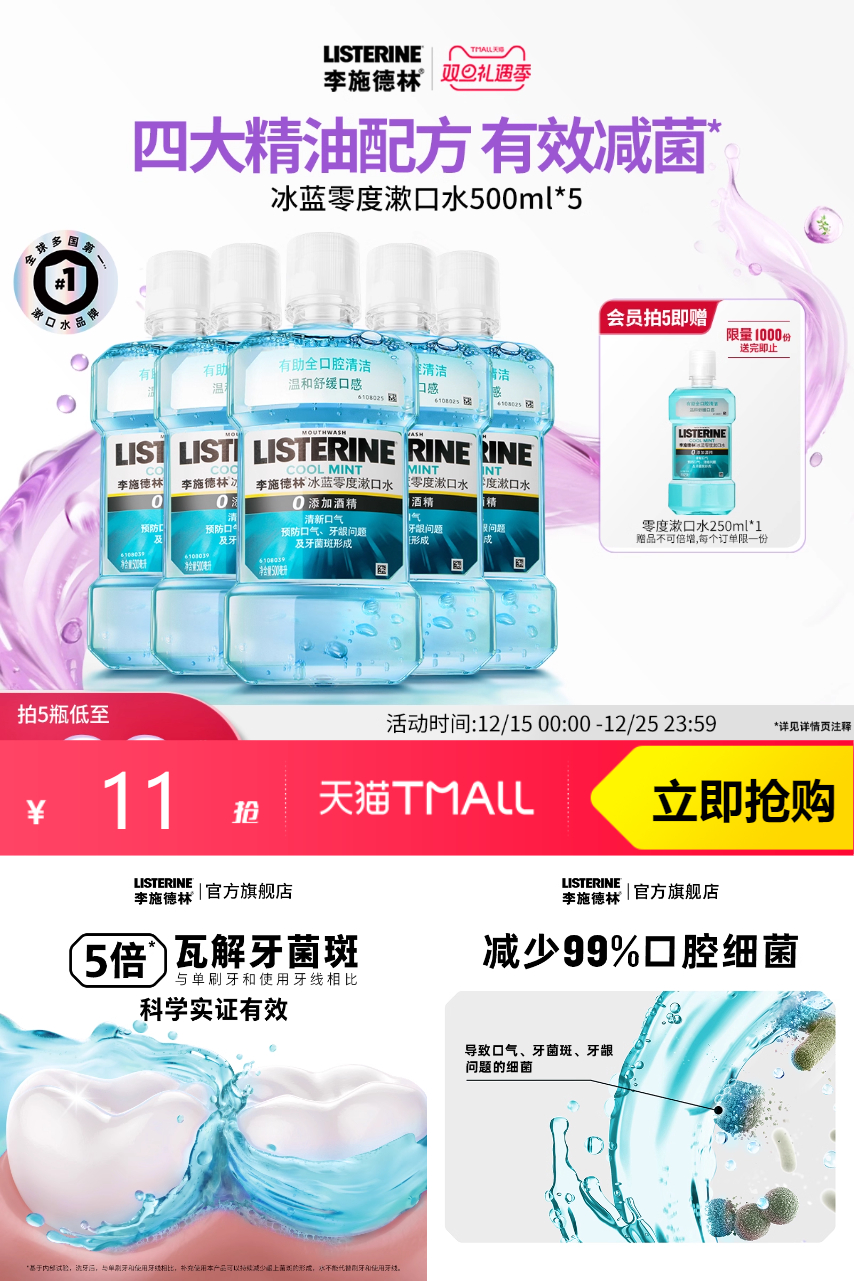 【30%,淘金币立减2.86到手8.14】李施德林零度精油漱口水,清新舒爽,4大植物精油,持久清新口气,0酒精,温和不刺激,深入刷牙盲区,洁净全口腔面积,还你清新口气~