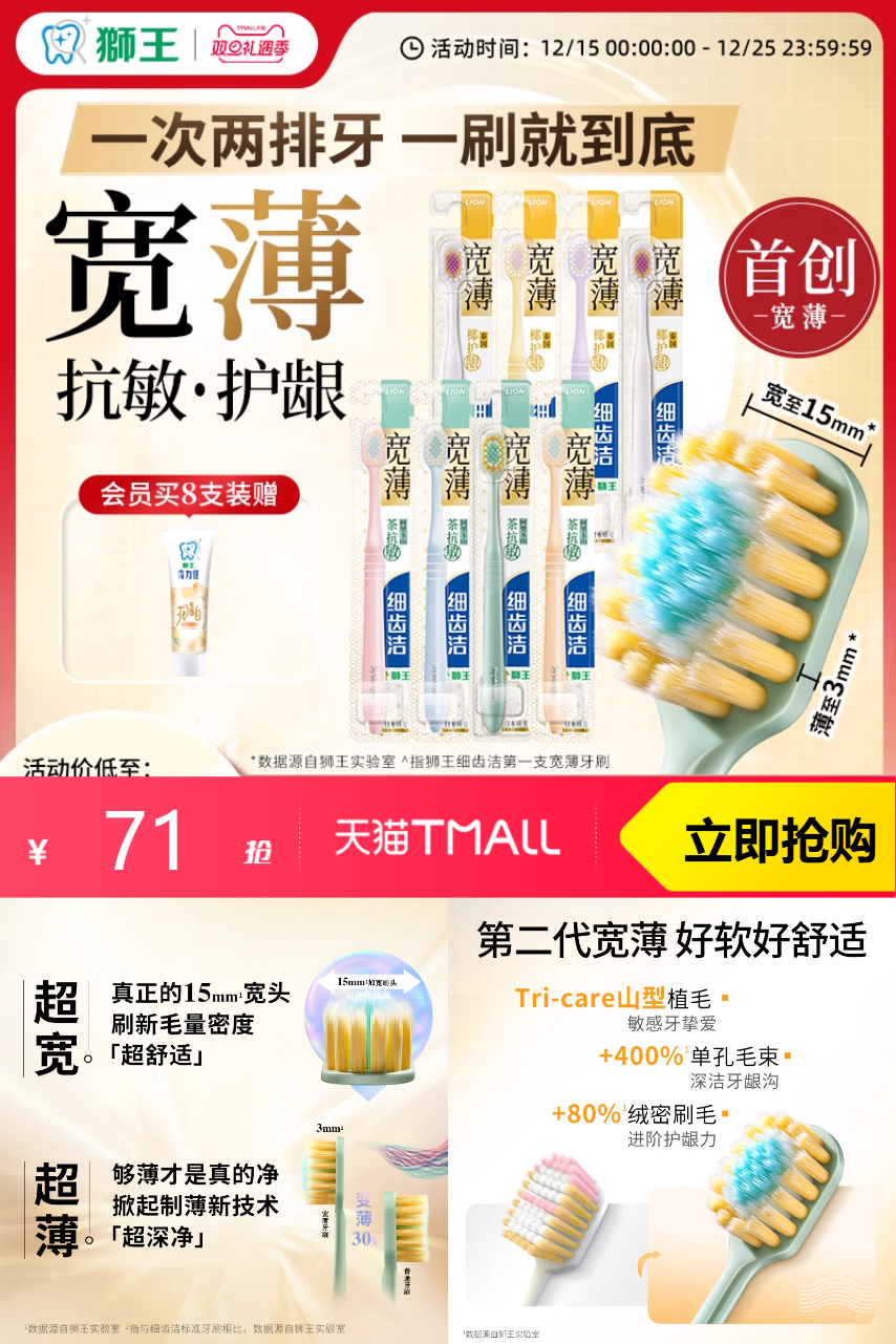 【淘金币9.12,首单3,到手58.88】成人软毛,家庭装,情侣专用,减压更抗敏,给你从未体验过的口腔洁净体验,一次两排牙、一刷就到底!!