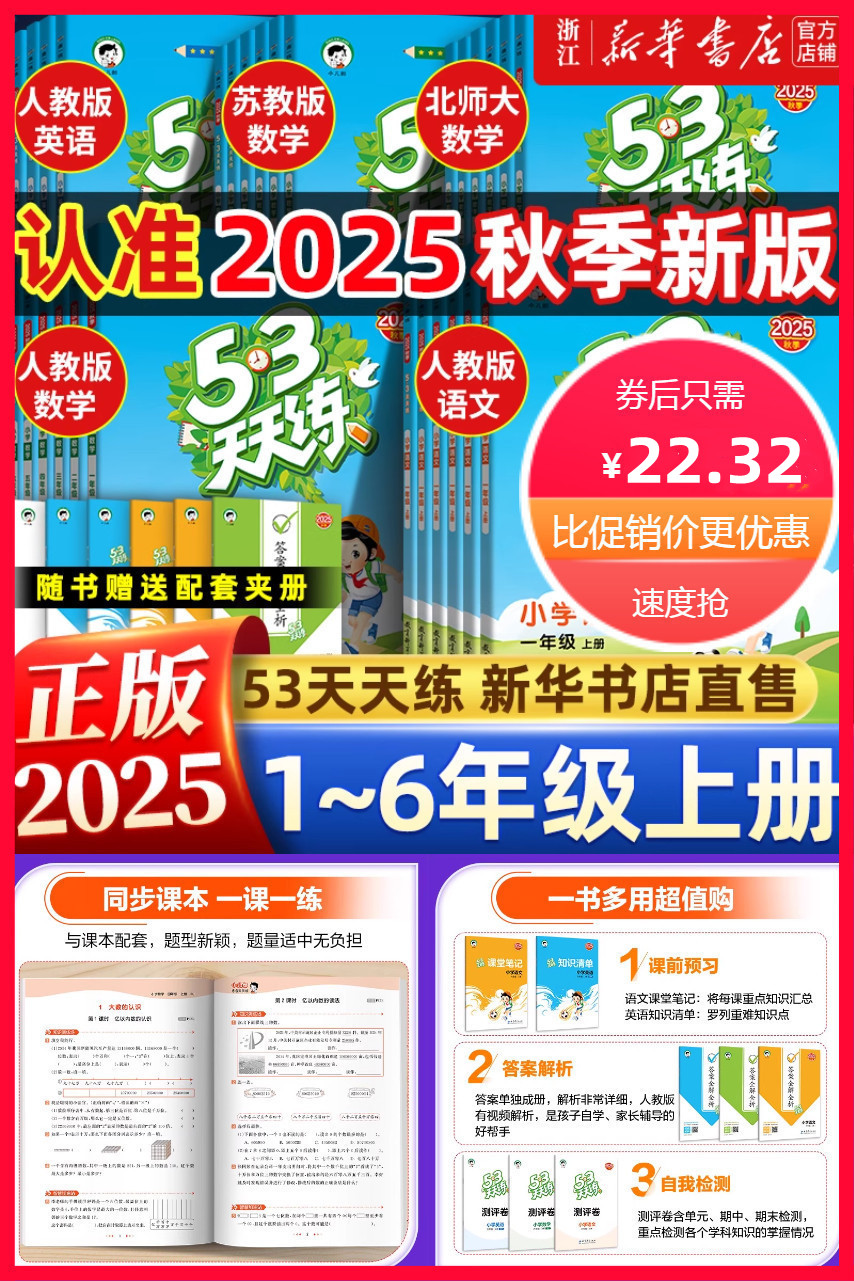 【淘金币+限时补贴!赠知识清单+测评卷+答案解析+课堂笔记】2025秋53天天练,同步教材,单元提优练习,检验学习效果,课前预习+答案解析+自我检测,全方位帮助孩子学习!孩子自学,家长辅导好帮手!53天天练,进步看得见!