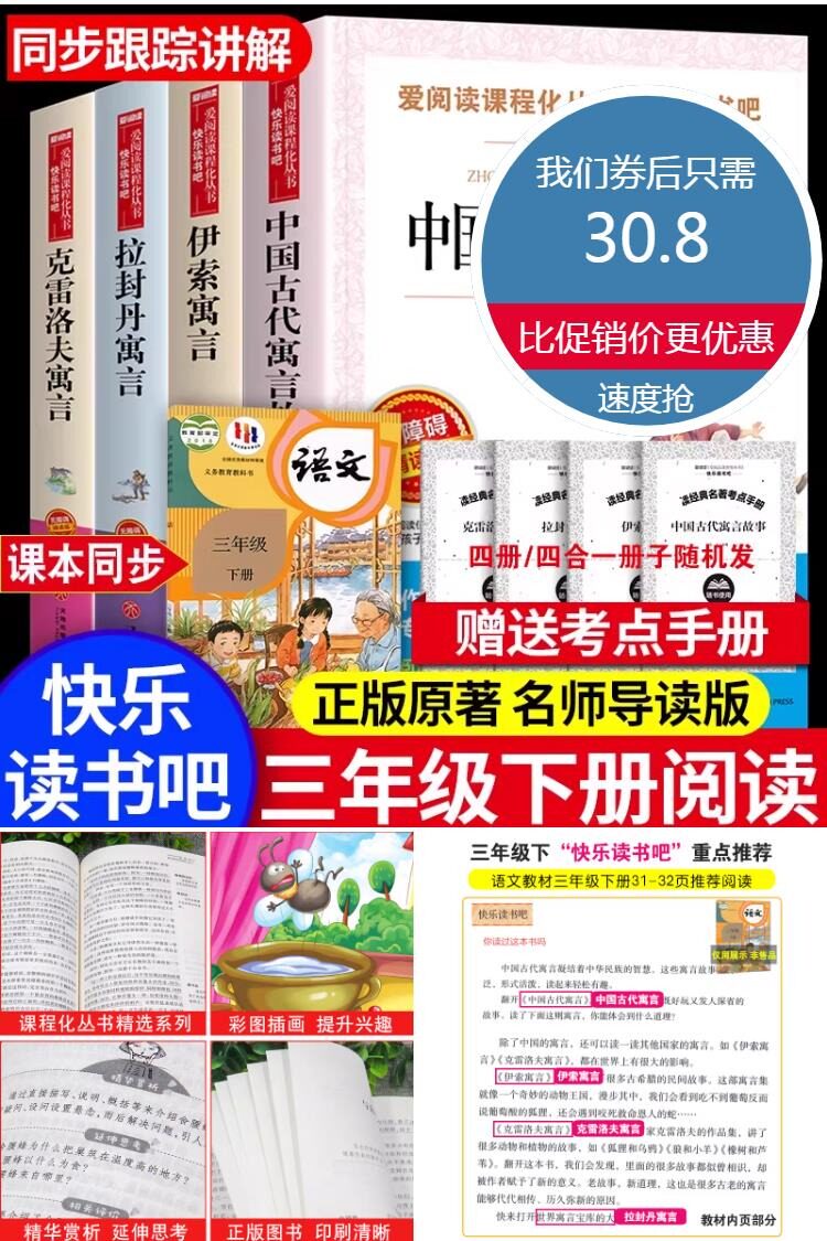 【赠考点手册*4!新华书店正版】快乐读书吧三年级下全4册,著名作家与教育家联袂推荐!名师导读,真题演练,分级阅读点拨,重点精批祥注,扫清阅读障碍!精美彩插设计,高清印刷,纸张厚实,无异味,老师重点推荐青少年专用版!