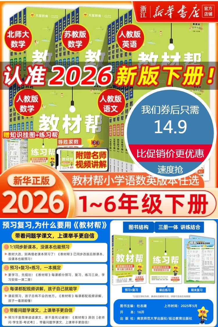 【赠练习帮+知识挂图】26春预售/25秋小学教材帮,同步课本,批注式讲解,课前预习练,课后巩固练,3大功能:学生自学+教师备课+家长辅导,名师辅导胜家教,预习复习更高效!