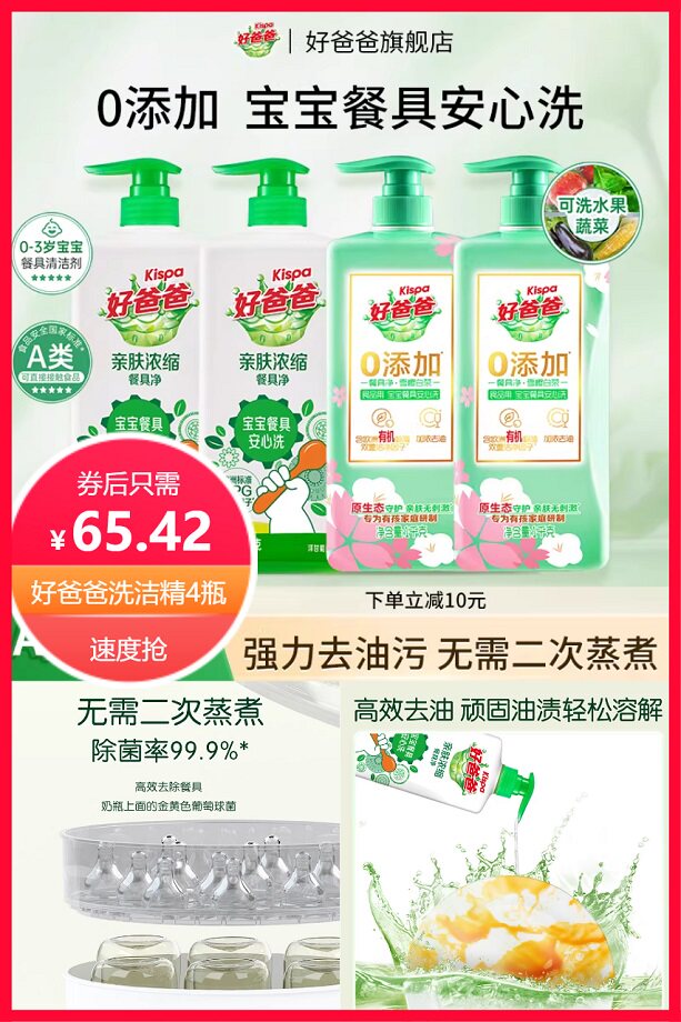 超级立减10元+券10元+淘金币省4.48元+88vip省3.5元后约61.92元,去油一步到位,蕴含茶籽精华,食品级洗洁精,易漂易过水,可以与食品蔬果直接接触,半年囤货量,省钱到家!