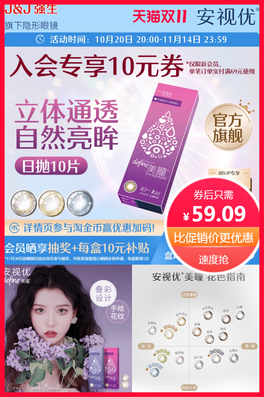 【官方立减17元+1件9.09折+9折消费券+淘金币+首单到手约41.38元】冰川湖蓝 + 高效防晒 + 舒适佩戴!模拟自然角膜形态,避免刺激!正品进口,品质保障!根据验光度数选色,更贴合个人需求!!