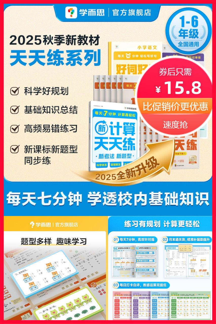 【淘金币抵扣更优惠,赠打卡日历】2025春数学计算天天练,名师精讲,科学体系,算理算法,聚焦易错,整页拍批,练习有规划,计算更轻松!每天7分钟,高效针对练!
