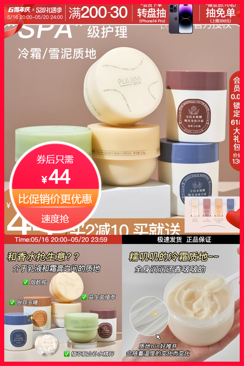 【叠加跨店满减到手约38.6元】宝玑米身体冷霜身体乳,一抹爆水,水感护肤,融入到每一寸肌肤,含多种天然植物油脂,既保湿滋润又不粘腻,每一款的香味都很好闻,留香超级持久~~