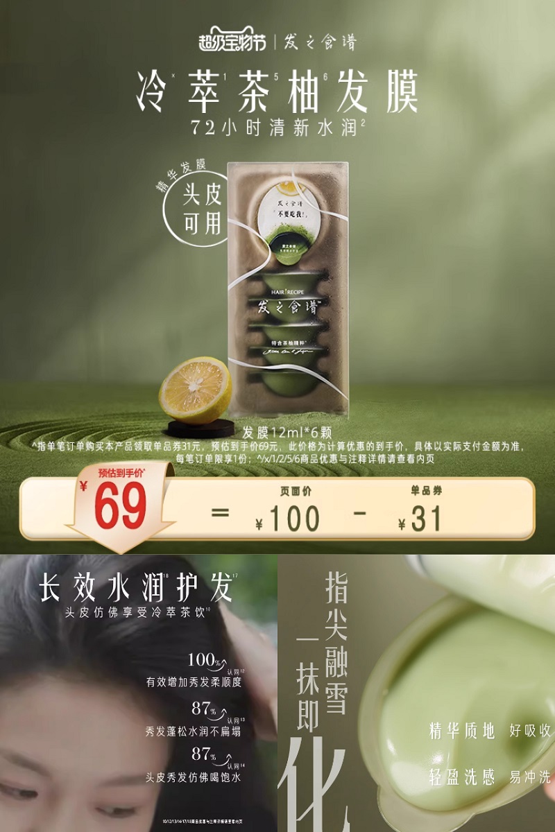 发之食谱控油冷萃护发精油,含天然抗氧化精粹,精华质地好吸收,轻盈洗感易冲洗,72小时清新水润,让秀发丰盈蓬松~【赠运费险】
