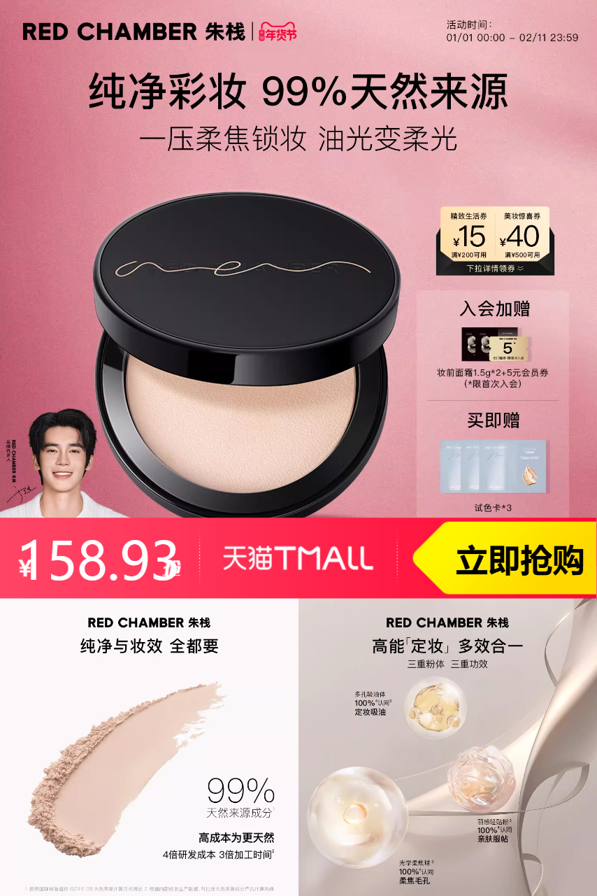 【原价199-礼金10.07-官方立减30-金币5.97-凑200减19.05=133.91到手】RC朱栈皮革意定粉饼0粉感磨皮,品质优选~