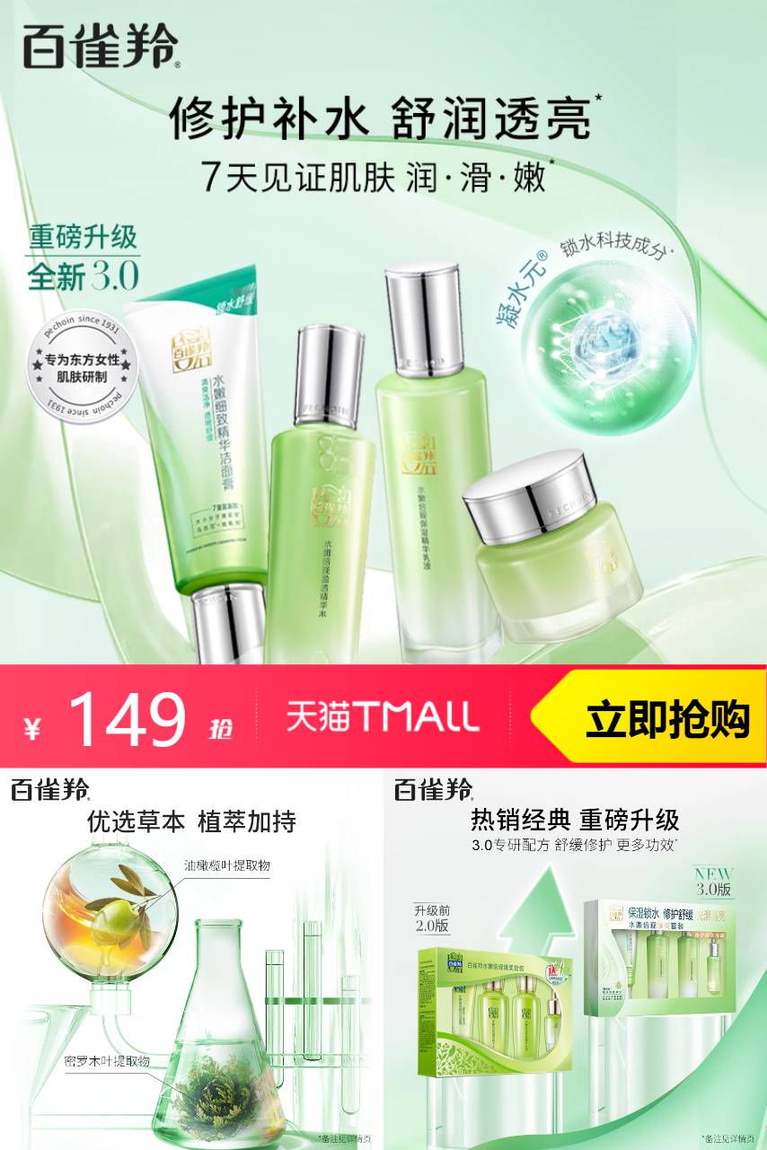 百雀羚 水嫩倍现水乳套装保湿修护补水透亮舒缓 176元减27 商品纠错
