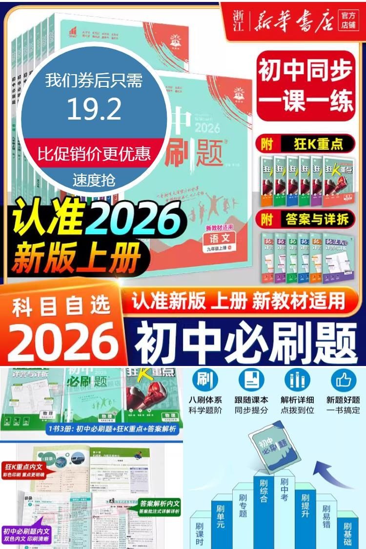 【赠狂K重点+答案解析】初中必刷题,年级科目版本任选,全.国通用,八刷体系,科学题阶,跟随课本,同步提分,解析详细,点拨到位,新题好题,一书搞定!刷去备考焦虑,刷出理想成绩!