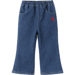 马克珍妮爱心绣花加绒牛仔微喇裤