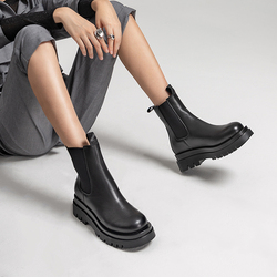 他她英伦风切尔西靴女靴显瘦加绒厚底烟筒靴