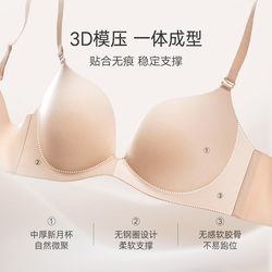 自然贴合,穿得舒适。中厚新月杯自然微聚,无钢圈设计柔软支撑,无感软胶骨不易跑位,微聚拢,穿出好胸型。