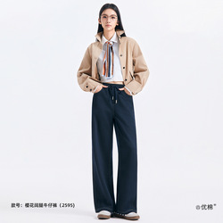 【优棉】樱花精油香氛阔腿牛仔裤