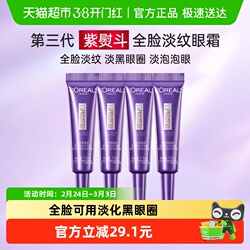 【下拉领淘金币】欧莱雅紫熨斗眼霜玻尿酸抗皱紧致黑眼圈7.5ml*4