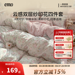【119起】,一默床上四件套床单被套亲肤双层纱床笠款春秋季双人套件床上用品