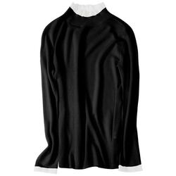 100%精纺羊毛衫蕾丝半高立领针织打底衫女2025秋冬新款毛衣内搭