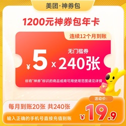 美团1200元神券年卡 240张5元无门槛券 直充到账