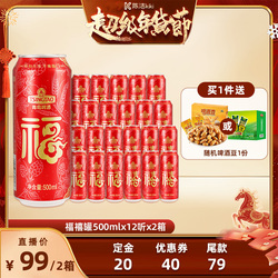【限量版】青岛啤酒福禧双至500ml*12罐*2箱,新年欢聚好礼!精选优质原料,醇厚口感,让你畅享啤酒带来的喜悦与欢乐。